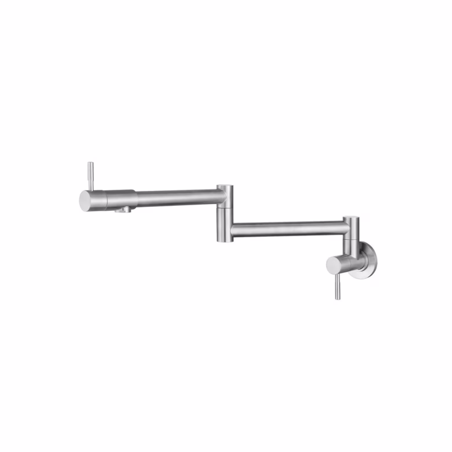 The Newmatic Pot Filler Kitchen Tap is a sleek, wall-mounted faucet that will add style and convenience to your kitchen. This double-jointed tap, which is made of high-quality stainless steel with a brushed finish, extends smoothly over your cooktop so you can fill pots directly without having to lift or carry them. When not in use, the swivel arms neatly fold against the wall, and its dual-handle design provides precise control. It blends everyday functionality with industrial elegance, making it perfect for contemporary kitchens.